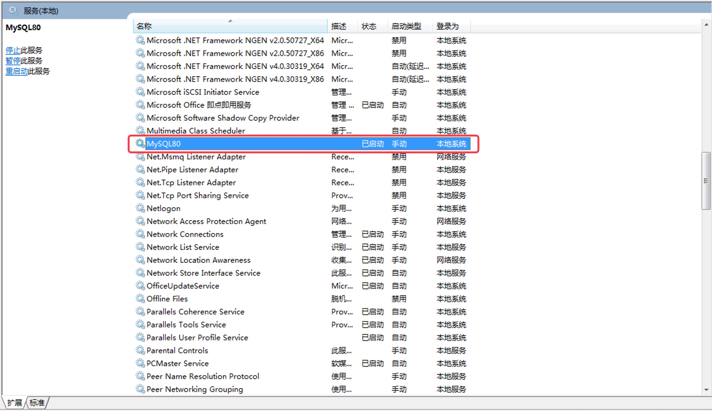 可以在 Windows 系统的“服务”窗口中启动或停止 MySQL。