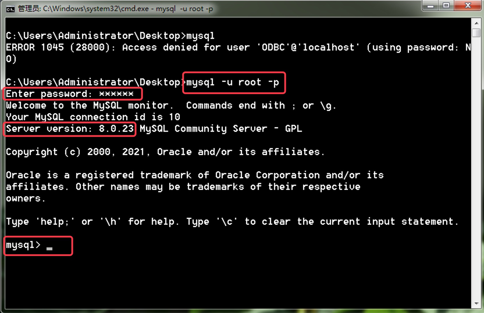 -u参数用来指定用户名,MySQL 默认的超级管理账号为root;-p表示要输入密码(用户口令);如果连接的是其他主机而非本机,可以用-h来指定连接主机的主机名或IP地址。