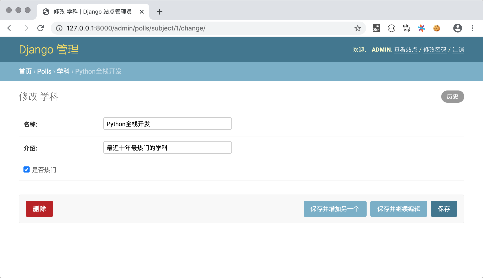is_hot = models.BooleanField(verbose_name='是否热门')